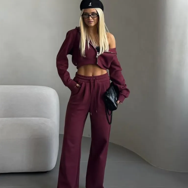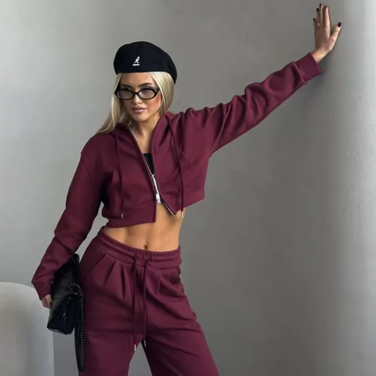 Autumn Cropped Crop Top Hooded Set
