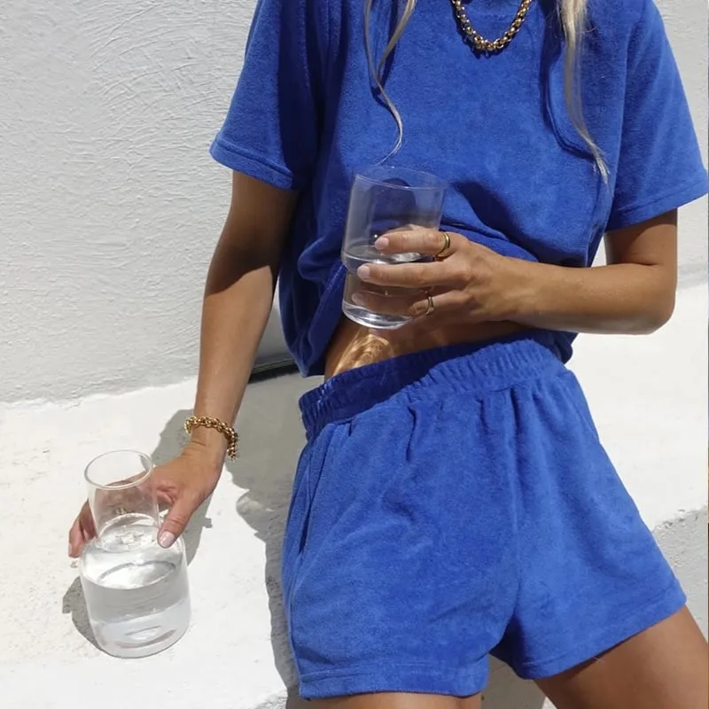 Fashionable Minimalist Solid-Color T-Shirt and Shorts Two-Piece Set